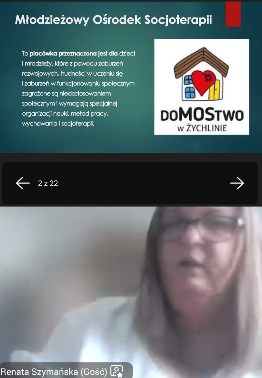 dr Aleksandra Tracz – Ośrodek Szkolno-Wychowawczy dla Dzieci Niewidomych w Laskach, Szkoła Podstawowa Specjalna dla Niewidomych - Zasady funkcjonowania Młodzieżowego Ośrodka Socjoterapii "DoMOStwo" w Żychlinie. Renata Szymańska – Młodzieżowy Ośrodek Socjoterapii "DoMOStwo" w Żychlinie