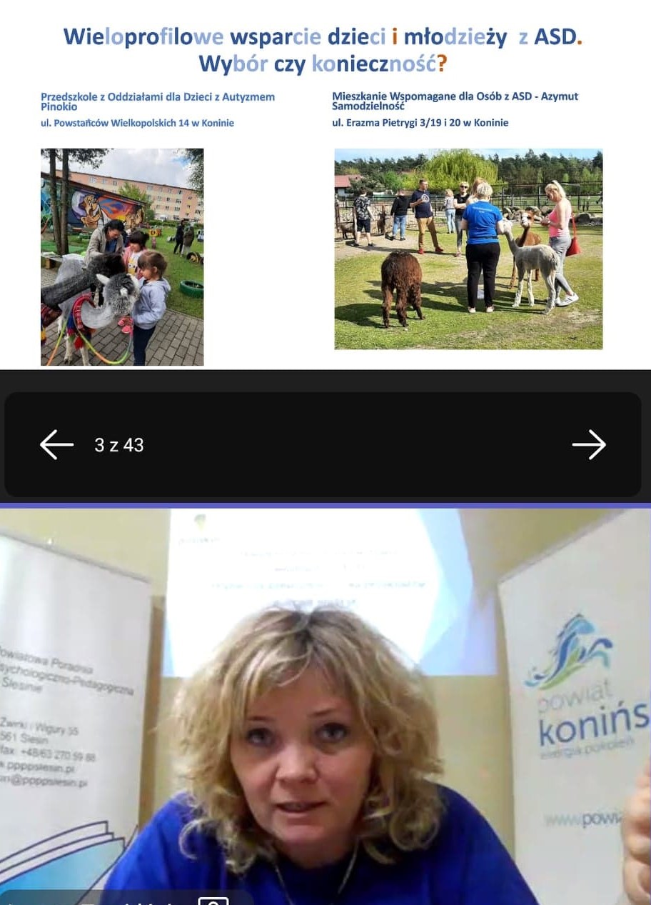 - Wieloprofilowe wsparcie dzieci i młodzieży z ASD. Wybór czy konieczność? – na przykładzie dobrych praktyk (Przedszkole Pinokio, Mieszkanie wspomagane Azymut Samodzielność) – Anna Leśna-Szymańska – Przedszkole z Oddziałami dla Dzieci z Autyzmem PINOKIO