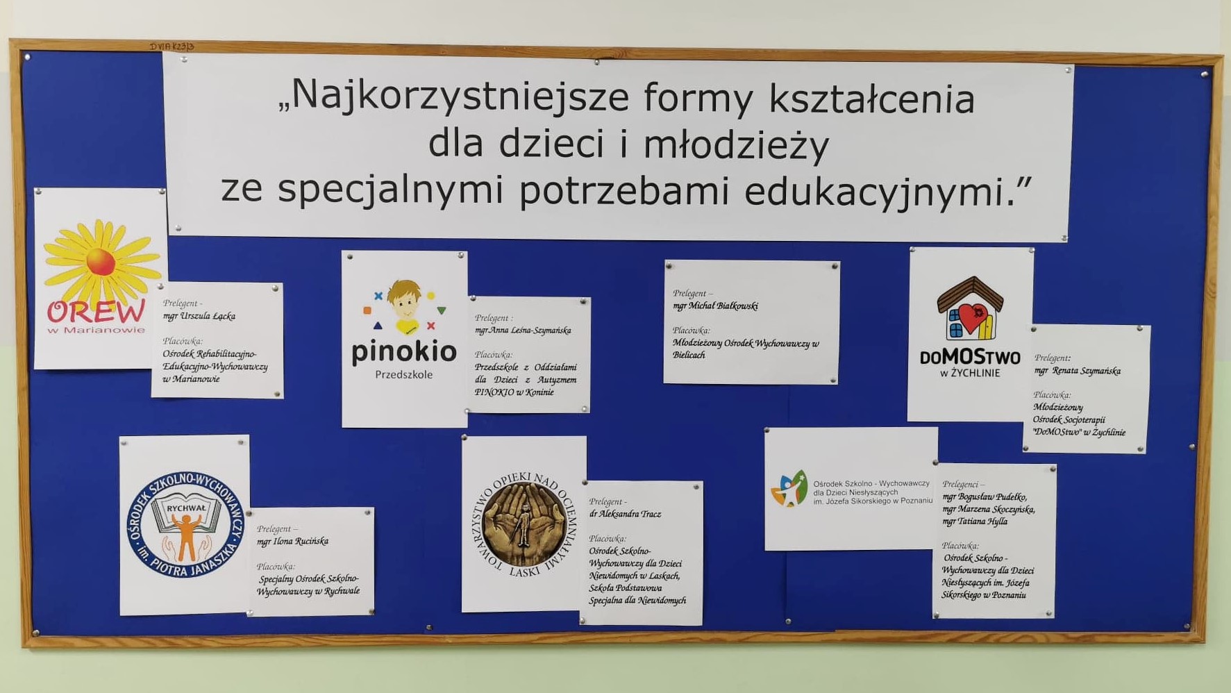 dr Aleksandra Tracz – Ośrodek Szkolno-Wychowawczy dla Dzieci Niewidomych w Laskach, Szkoła Podstawowa Specjalna dla Niewidomych - Zasady funkcjonowania Młodzieżowego Ośrodka Socjoterapii "DoMOStwo" w Żychlinie. Renata Szymańska – Młodzieżowy Ośrodek Socjoterapii "DoMOStwo" w Żychlinie