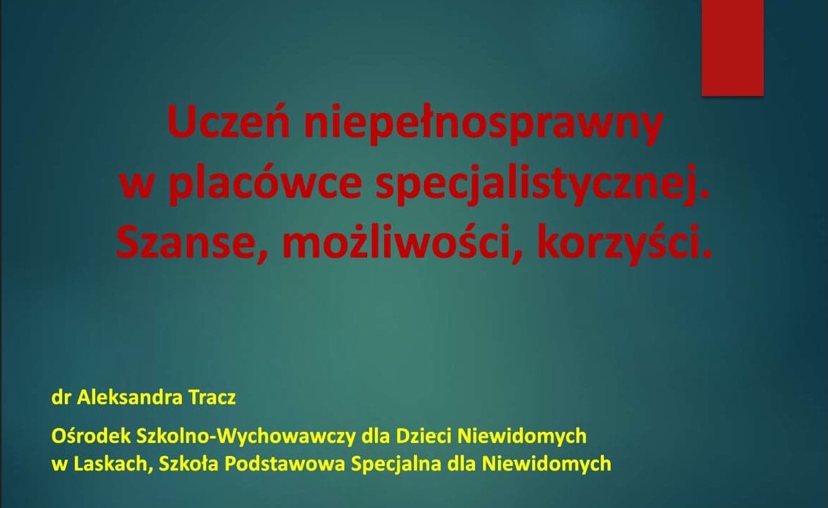 - Uczeń niepełnosprawny w placówce specjalistycznej. Szanse, możliwości, korzyści.