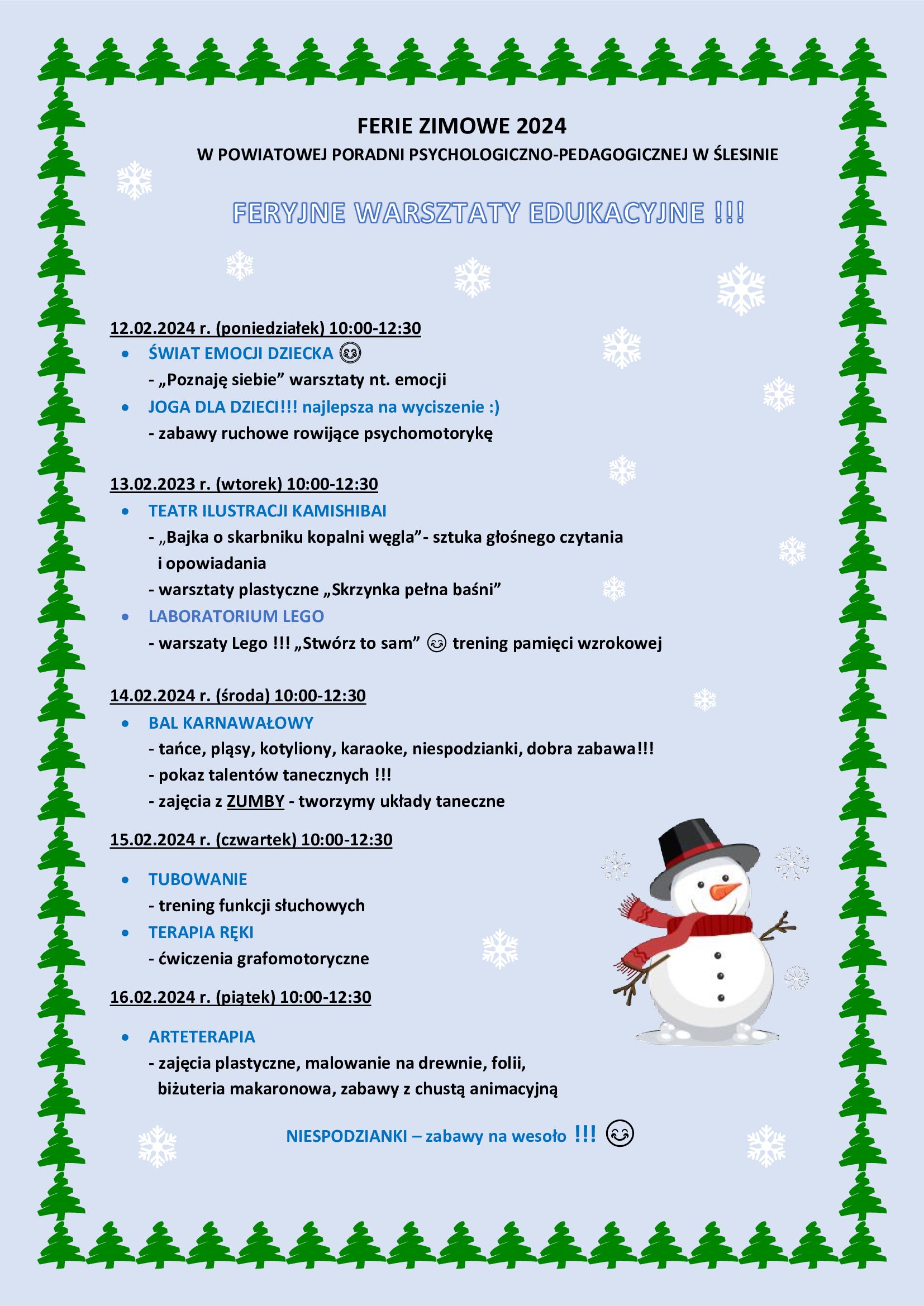 Zapewniamy, że ferie z poradnią będą pełne radości, nauki, wspaniałych wspomnień, uśmiechu i pozytywnej energii!